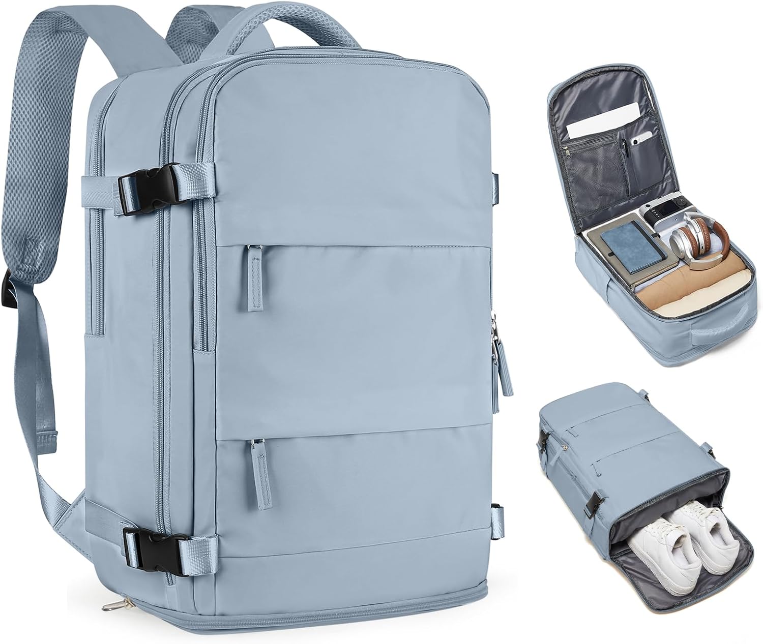• 【APPROVED BY MOST FLIGHTS】 External dimensions are 16.5×11.9×7.9 inches (H×W×D), 2lbs weight (manual measurement, for reference only, subject to actual measurement). This backpack meets the boarding requirements and can be opened and folded 180 degrees like a suitcase, which can quickly pass through airport security and is specially designed for plane travel